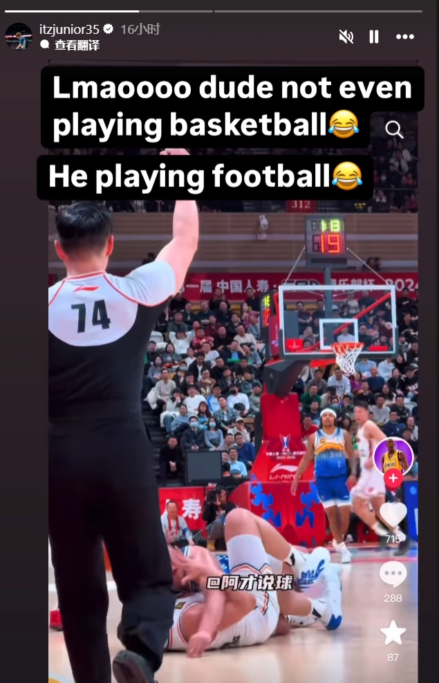 洛夫頓更新INS吐槽了CBA的犯規,隨后再次點(diǎn)名艾孜麥提,寫(xiě)道:“笑死我了,這哥們就不是來(lái)打籃球的????,來(lái)打橄欖球的吧。????”