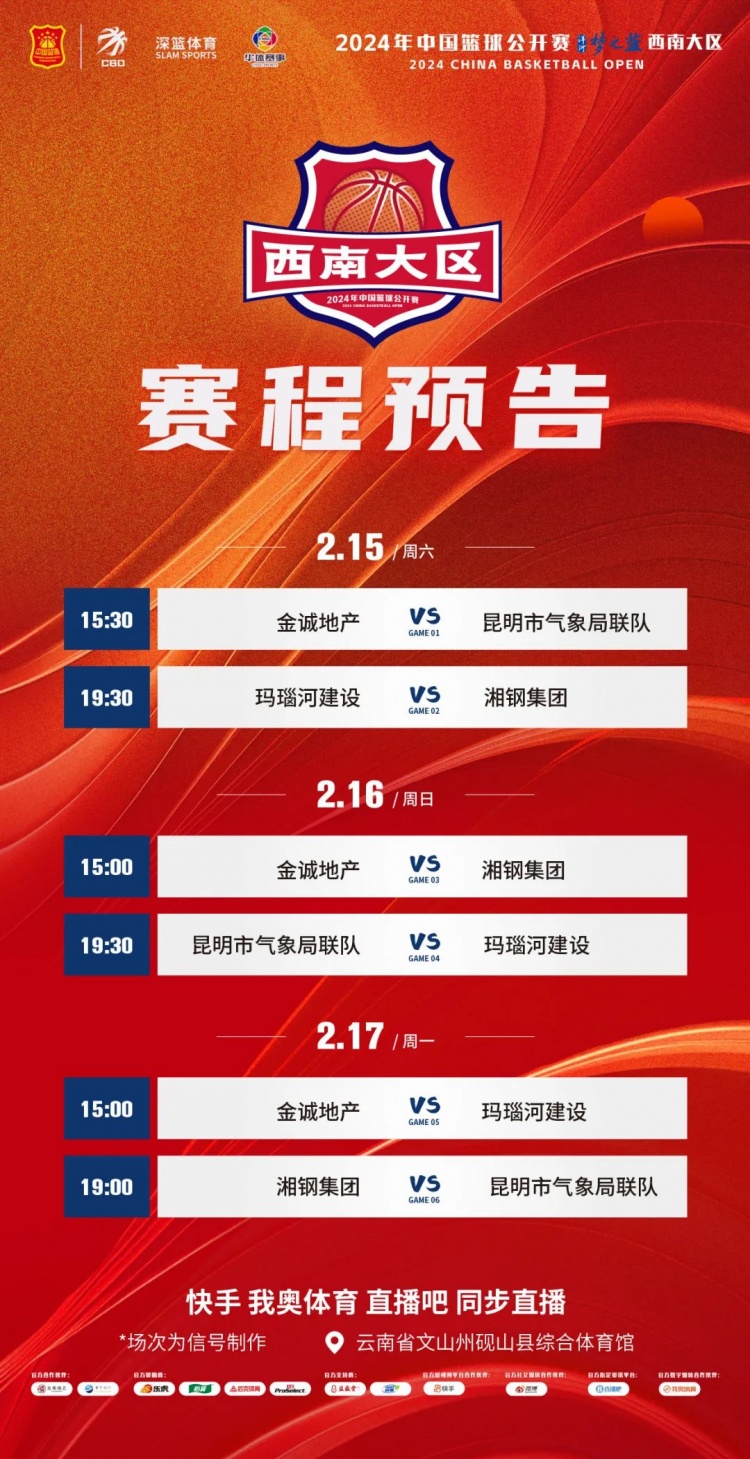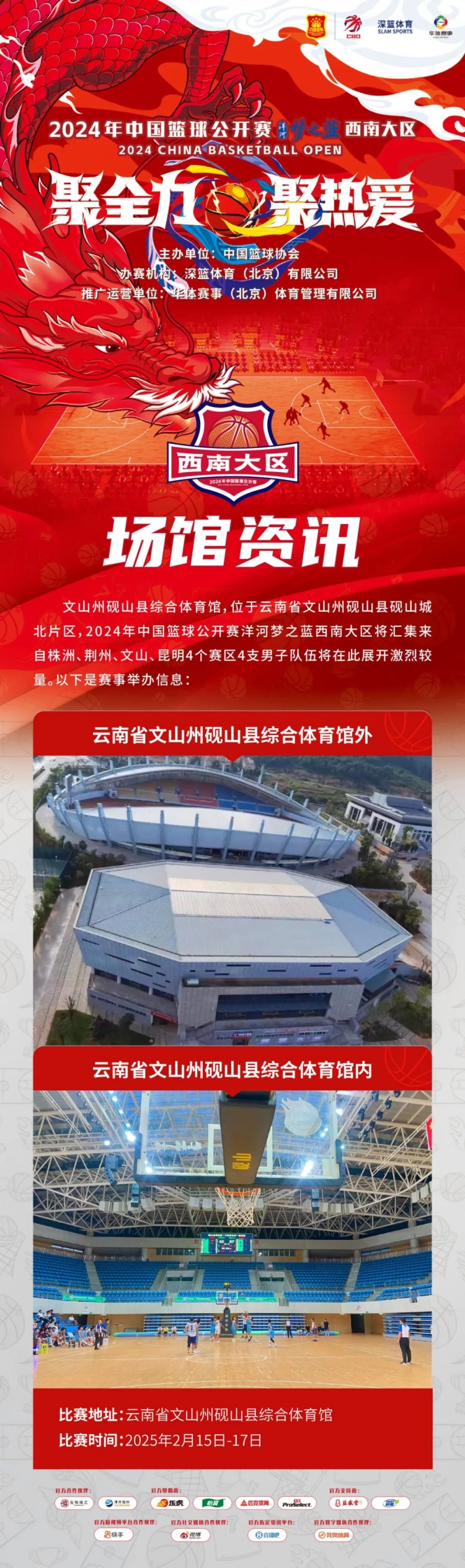 2月15日-17日,2024年中國籃球公開(kāi)賽洋河夢(mèng)之藍西南大區賽將在云南省文山州硯山縣綜合體育館舉辦,來(lái)自西南賽區各省市的4支男籃隊伍將在文山硯山激烈爭奪通往全國總決賽的入場(chǎng)劵。新年伊始,齊聚文山,誰(shuí)能在這場(chǎng)激烈競爭中突出重圍,捧起通過(guò)全國總決賽的希望之鑰,讓我們拭目以待!