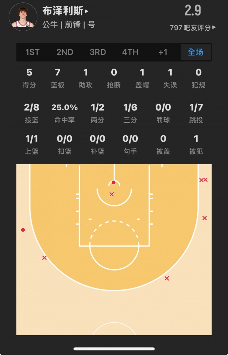 公牛11號秀 馬蒂斯-布澤利斯 登場(chǎng)24.3分鐘