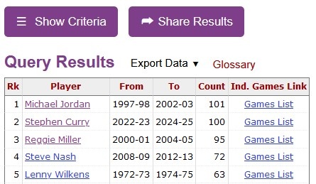 據統計,庫里35歲之后已101次得分20+,他也追平喬丹,成為歷史上達到這一成就最多的后衛。