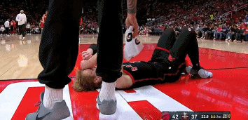 望無(wú)大礙!迪克上籃后被阿門(mén)的肘碰到頭部 緩了好一會(huì )&回更衣室了
