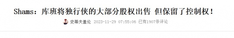 值得一提的是,2023年11月29日,Shams報道,庫班將獨行俠的大部分股權出售,賣(mài)給了米麗婭姆-阿德?tīng)柹约鞍⒌聽(tīng)柹易?,估值大約在35億美元。