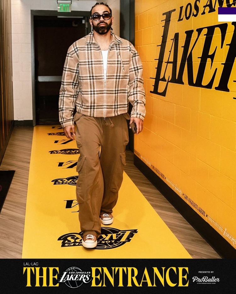 湖人眾將入場(chǎng)穿搭:老詹短褲+拖鞋 文總墨鏡+格子衫 克內克特干練