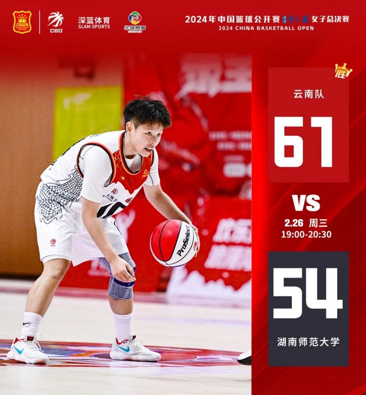 云南隊和湖南師范大學(xué)在本輪相遇,實(shí)力相當的兩支球隊打得相對膠著(zhù)。上半場(chǎng),10平后,湖南師范大學(xué)30號趙詩(shī)雨兩分命中,隨后6號沈思榆外線(xiàn)再貢獻一個(gè)三分球,15-10湖南師范大學(xué)超出。云南隊依靠6號羅菲和14號娜漢的進(jìn)攻緊咬比分。半場(chǎng)結束云南隊落后湖南師范大學(xué)1分。下半場(chǎng),兩隊依舊難解難分。在云南隊幾次外線(xiàn)得分實(shí)現反超,14號娜漢外投內突,連續得分,云南隊士氣大漲,最終云南隊61-54戰勝湖南師范大學(xué)。