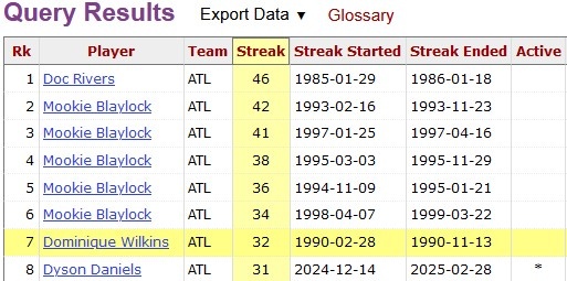 而連續32場(chǎng)搶斷在老鷹隊史上能排到并列第7,排名第一的是現雄鹿主帥道格-里弗斯的46次!