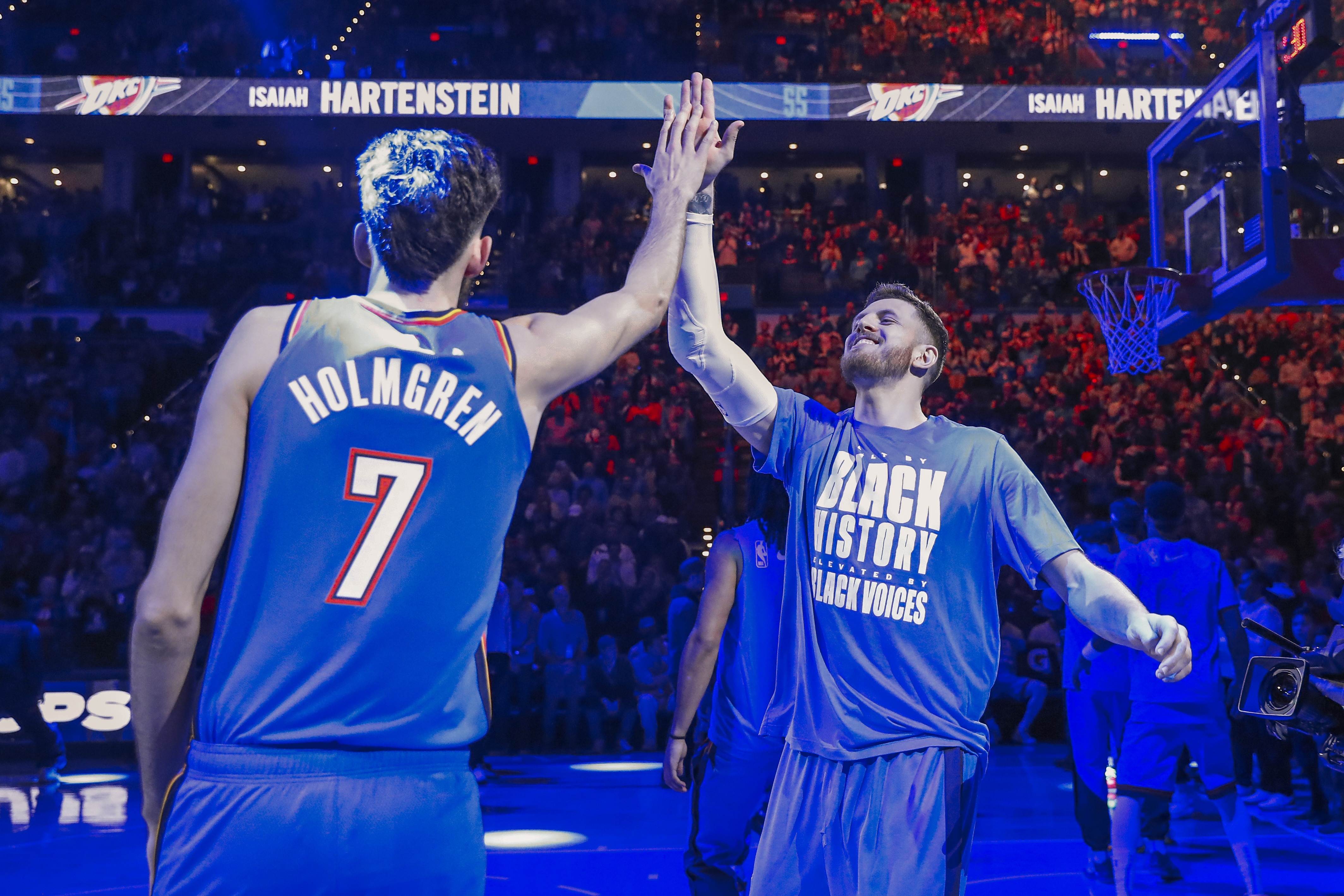 Tim MacMahon:霍姆格倫和哈爾滕施泰因在雷霆的季后賽計劃中占據重要地位,但尚不確定雷霆是否會(huì )同時(shí)使用這兩位大個(gè)子作為首發(fā)。這可能是一個(gè)根據對手情況逐輪調整的決定,甚至可能在系列賽期間進(jìn)行調整?;裟犯駛惡凸栯┨┮蛲瑫r(shí)出場(chǎng)的97分鐘里,雷霆凈勝對手20分。雖然樣本量很小,但這對組合的防守效率(116.5)卻出奇地差。
