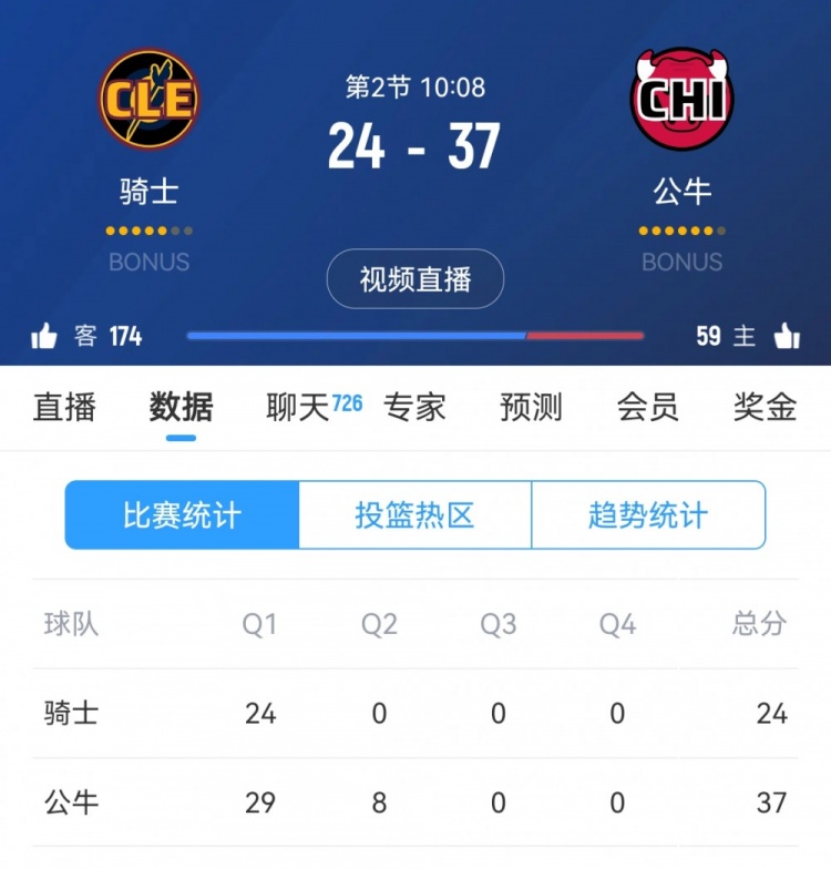 第二節,公牛持續發(fā)力,2分鐘轟出8-0將優(yōu)勢擴大到13分,打停騎士。