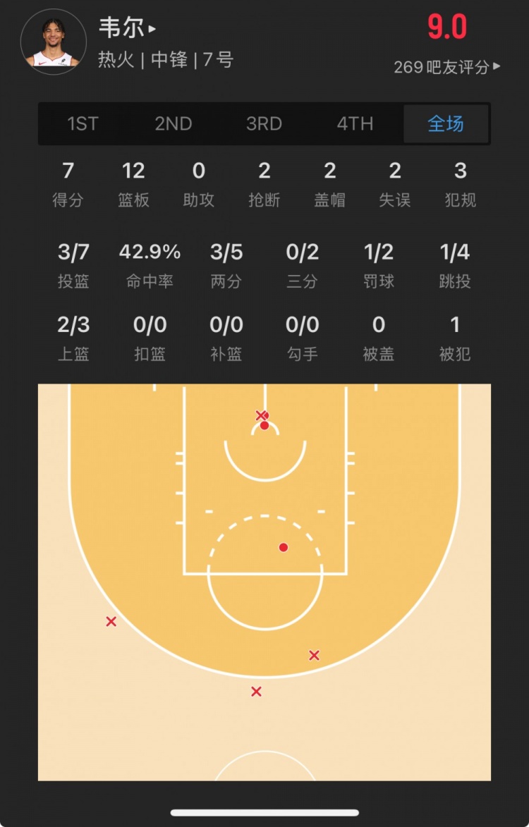 熱火15號秀 克雷爾-韋爾 登場(chǎng)26.5分鐘