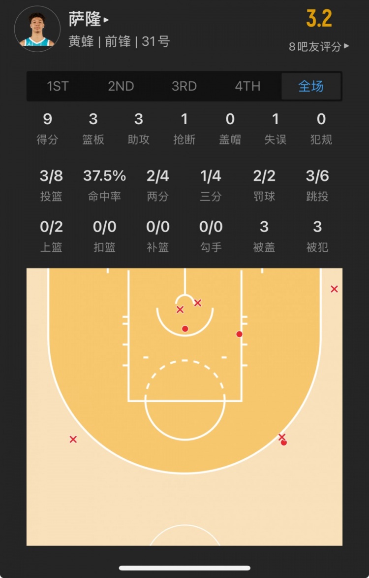 黃蜂6號秀 提賈尼-薩隆 登場(chǎng)18.9分鐘