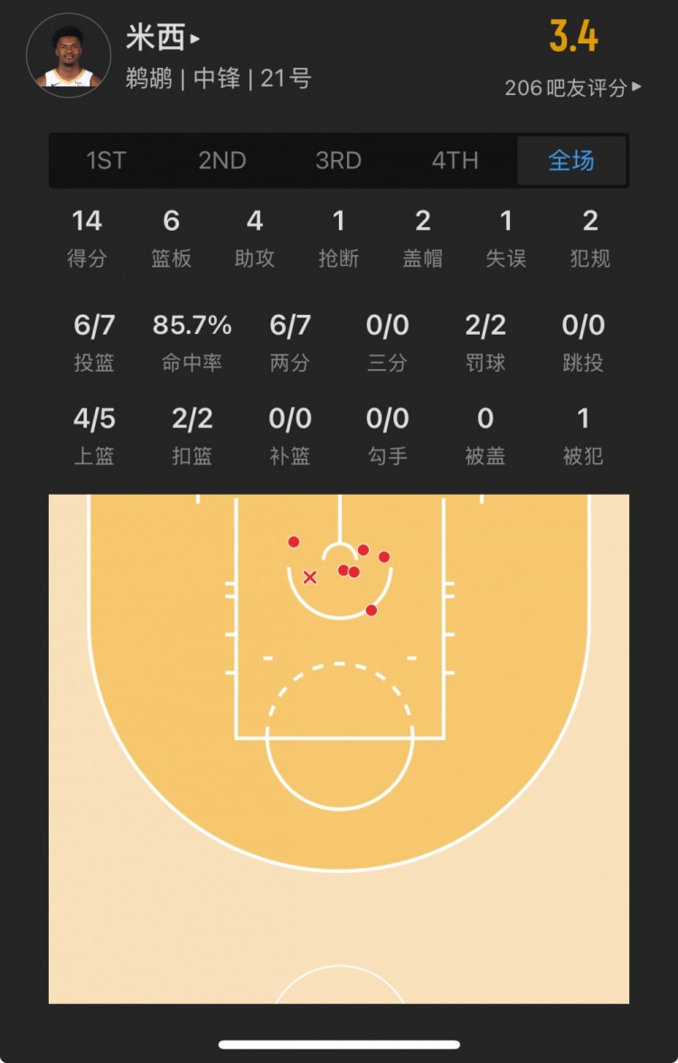 鵜鶘21號秀 伊夫-米西 登場(chǎng)28.0分鐘