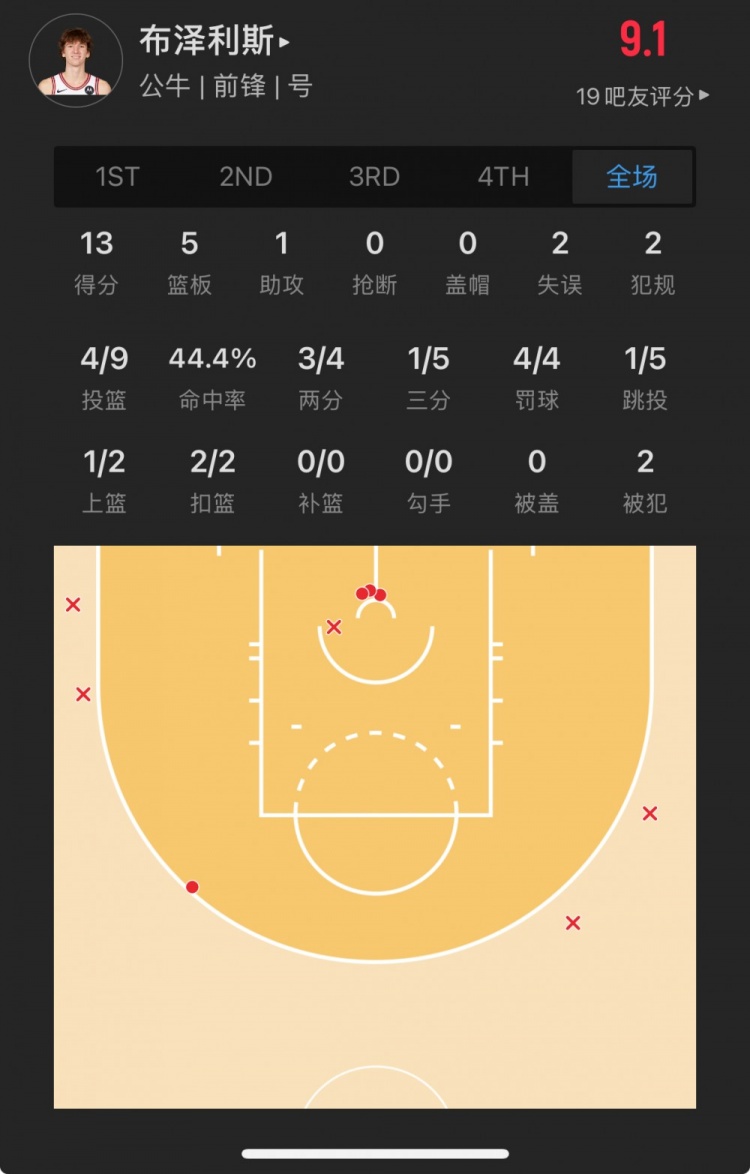 公牛11號秀 馬蒂斯-布澤利斯 登場(chǎng)32.3分鐘