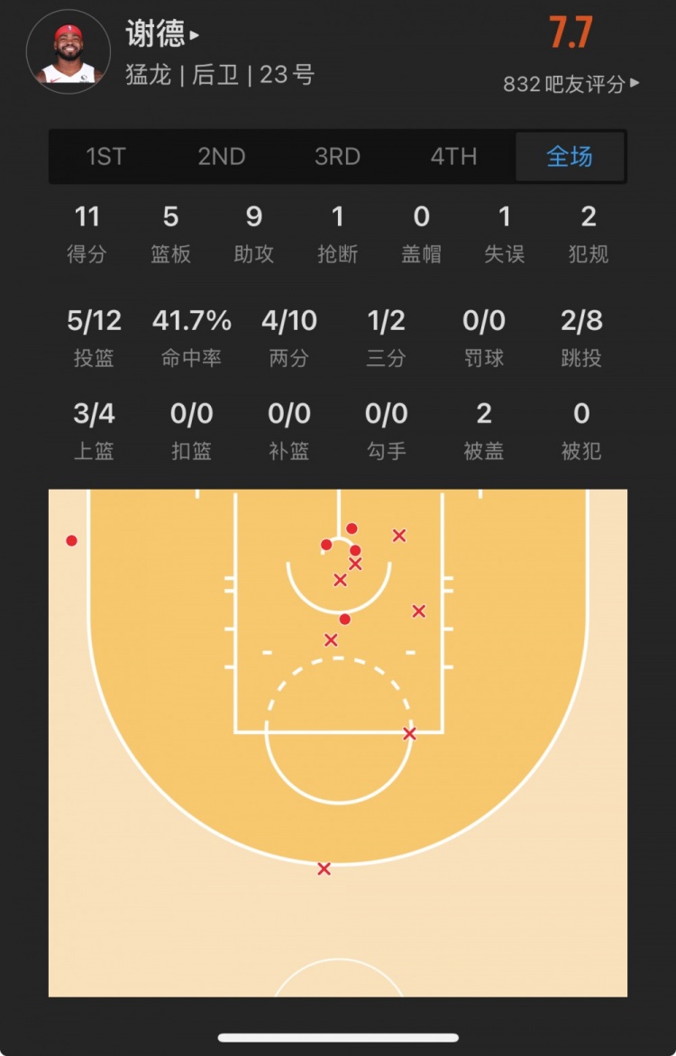 猛龍45號秀 賈馬爾-謝德 登場(chǎng)28.7分鐘