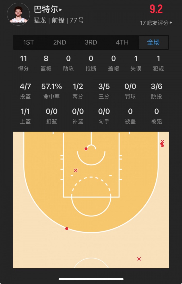 猛龍落選秀 賈米森-巴特爾 登場(chǎng)21.2分鐘