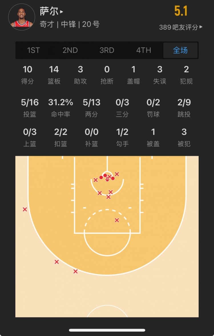 奇才榜眼秀 亞歷克斯-薩爾 登場(chǎng)28.1分鐘
