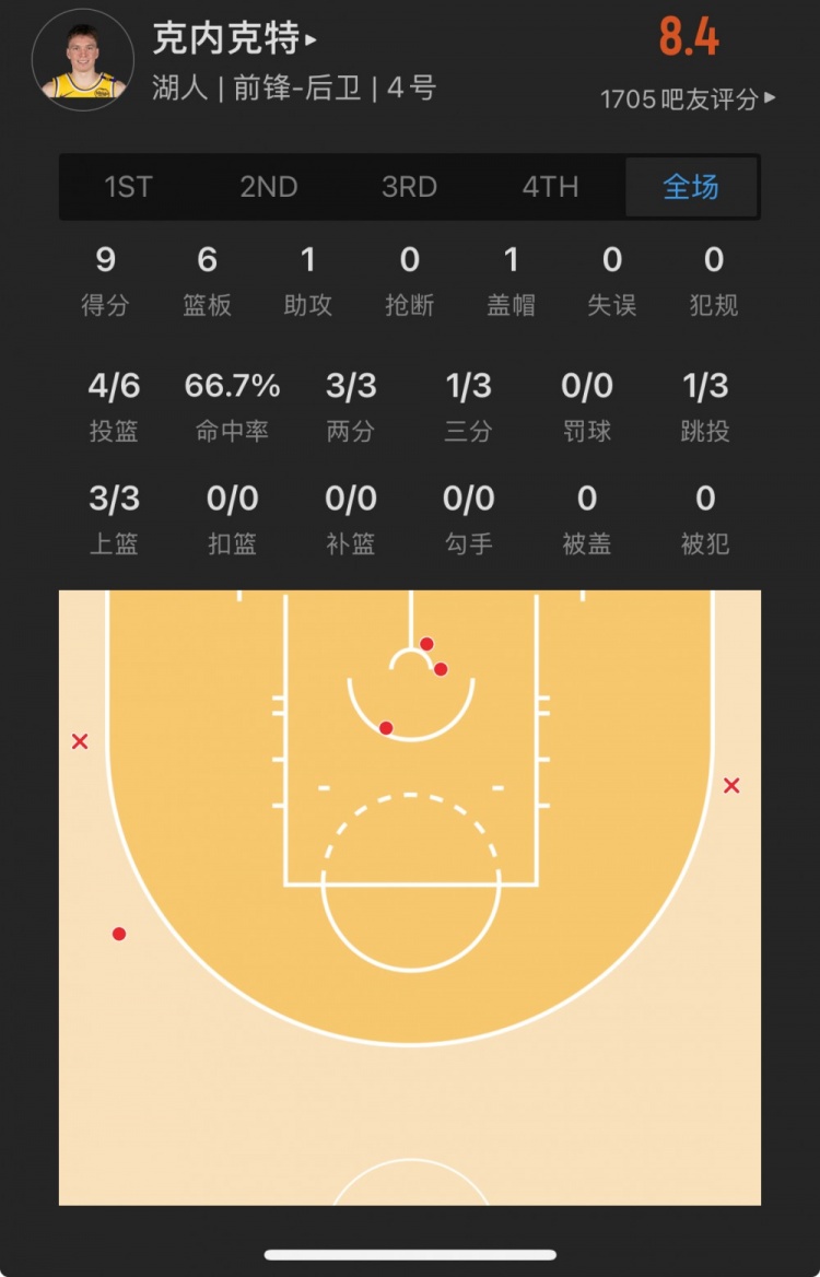 湖人17號秀 道爾頓-克內克特 登場(chǎng)23.8分鐘