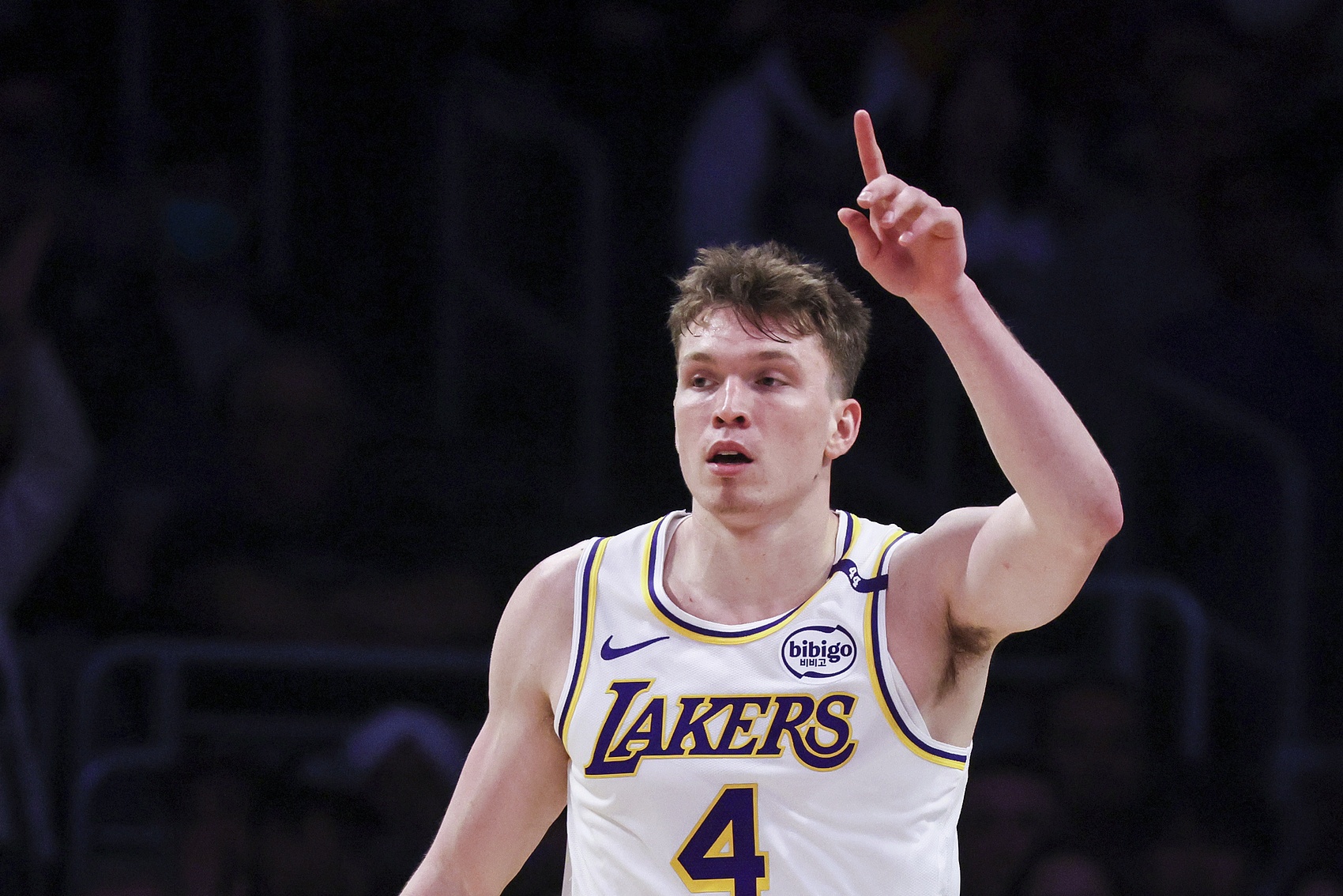 克內克特永遠會(huì )記得去年11月19日那場(chǎng)爆砍37分的生涯之戰,當他回顧自己的新秀賽季時(shí),這場(chǎng)比賽無(wú)疑會(huì )首先浮現在腦海中。然而,克內克特的新秀賽季其他部分并不順利,尤其是在去年12月,他的投籃手感陷入冰點(diǎn),45次三分出手僅命中7球。1月份有所好轉,這位23歲的側翼球員三分命中率回升至36.8%,場(chǎng)均得到8.3分??傮w而言,克內克特仍然是一名危險的射手,防守者不敢忽視他。他在傳球方面也展現出了一定的天賦,能夠在對手全力封堵他三分出手時(shí)幫助球隊維持進(jìn)攻火力。目前尚不清楚東契奇能否為他創(chuàng )造更多輕松出手的機會(huì ),或者這位新秀在湖人的角色是否會(huì )因球隊近期以精英防守為核心而縮小。