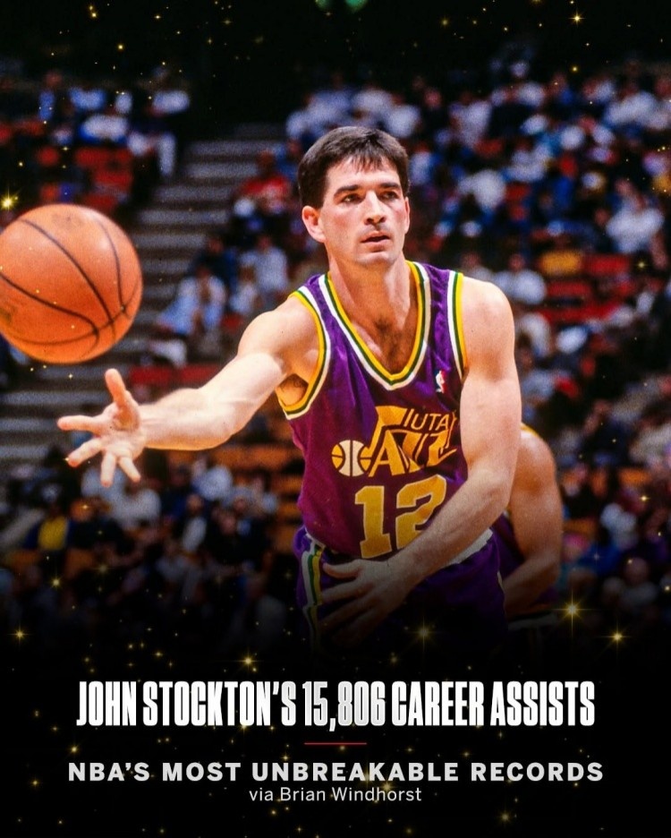 斯托克頓從1987年到1996年連續9個(gè)賽季領(lǐng)跑聯(lián)盟助攻榜,他的生涯助攻數比排名歷史第二的現役球員克里斯-保羅多出3000多次。保羅即將進(jìn)入職業(yè)生涯的第20個(gè)賽季,并在今年五月將年滿(mǎn)40歲。保羅職業(yè)生涯場(chǎng)均助攻9.3次,如果他想追上斯托克頓,需要在接下來(lái)的近五個(gè)賽季中保持這一數據且全勤出戰。斯托克頓擁有NBA歷史上單賽季助攻數的前四名紀錄,并在前十名中占據了七席,他還有31場(chǎng)比賽送出不少于20次的助攻。此外,斯托克頓還是NBA歷史搶斷王,生涯搶斷數達到3265次,比排名第二的賈森-基德多出近600次。