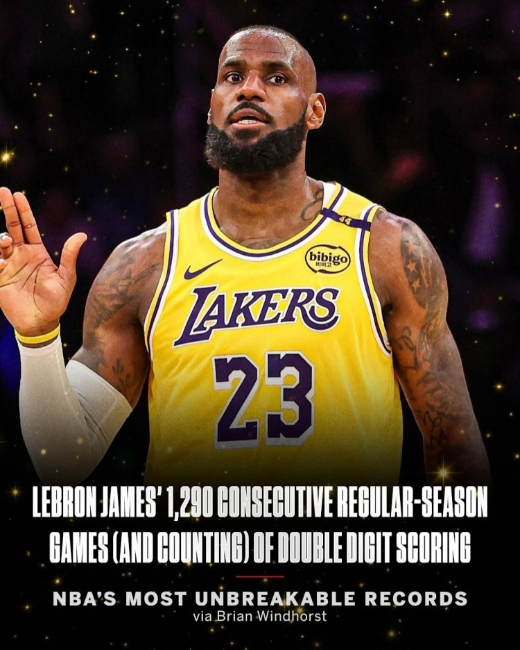 勒布朗-詹姆斯的1290場(chǎng)連續得分上雙(仍在延續)