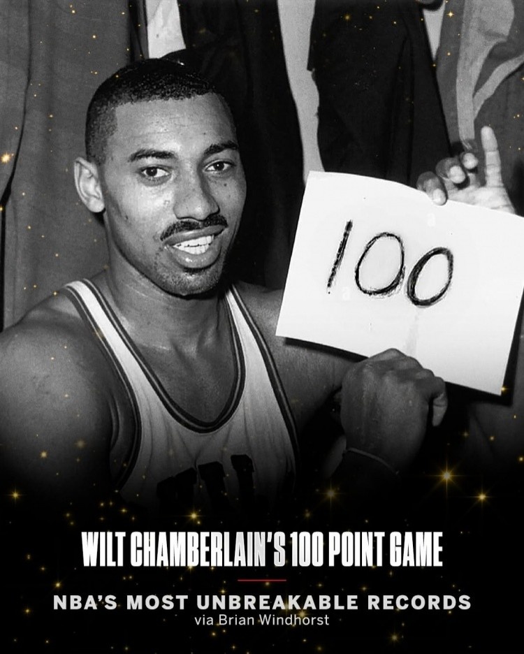 我們剛剛度過(guò)了這一壯舉的63周年紀念日(1962年3月2日),而這一紀錄極有可能在100周年時(shí)依然無(wú)人打破。張伯倫在那個(gè)賽季早些時(shí)候曾單場(chǎng)得到78分(那場(chǎng)比賽湖人的埃爾金-貝勒得到63分,最終張伯倫所在的球隊在加時(shí)賽中輸給了湖人),并在接下來(lái)的賽季中有兩場(chǎng)70+的表現。那場(chǎng)100分比賽的關(guān)鍵在于他的罰球表現,張伯倫罰球線(xiàn)上32罰28中,命中率高達87.5%。而張伯倫職業(yè)生涯的罰球命中率僅為51%,那晚的罰球表現無(wú)疑是他在那個(gè)神奇賽季中最出色的一次。科比在2006年曾單場(chǎng)得到81分,是NBA歷史上第二高的單場(chǎng)得分,而且他比張伯倫少出手了17次(科比46次出手,張伯倫63次)。自科比以來(lái),只有東契奇(73分)、米切爾(71分)、利拉德(71分)、布克(70分)和恩比德(70分)曾單場(chǎng)得分超過(guò)70分。