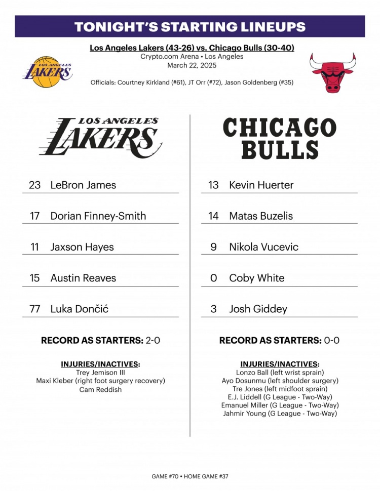3月23日訊 上午10點(diǎn)半,湖人主場(chǎng)迎戰公牛。