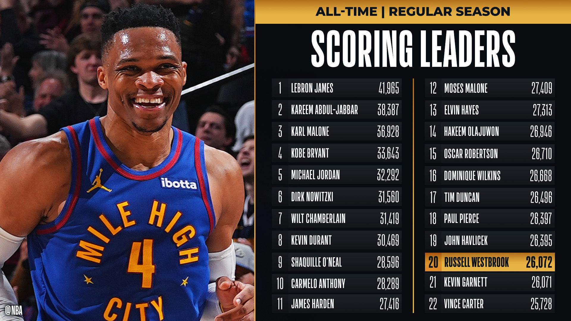 鏈接>>>恭喜????威少生涯總得分超越加內特 升至NBA歷史第20位!