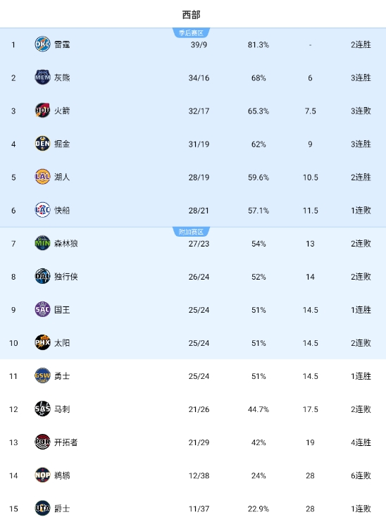 太陽(yáng)戰績(jì)來(lái)到25勝24負,跟今天贏(yíng)球的國王和勇士再次戰平。由于排名規則,太陽(yáng)排在西部第十。