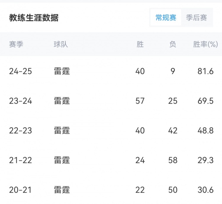 相關(guān)新聞>>>頭兩季僅30%勝率!雷霆主帥戴格諾特執教勝率來(lái)到50%