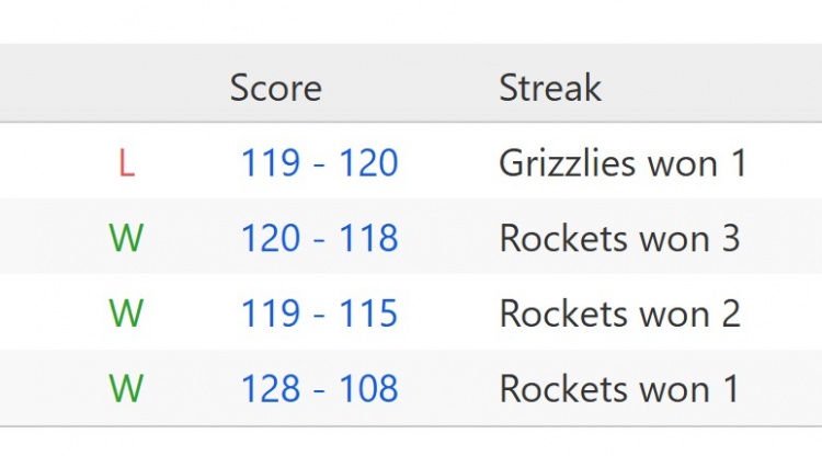 季后賽見(jiàn)?本賽季常規賽火箭對灰熊3勝1負 三場(chǎng)關(guān)鍵時(shí)刻決勝