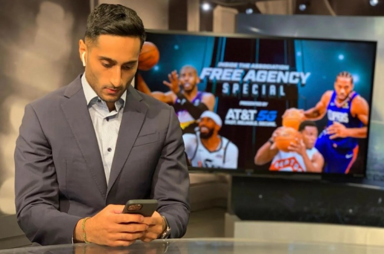 一陣響亮的鈴聲過(guò)后,沙姆斯-查拉尼亞(Shams Charania)第9次放下手中的面包片,為了避免滿(mǎn)手果醬弄臟屏幕,他用小拇指打字,回復某位NBA總經(jīng)理的消息。