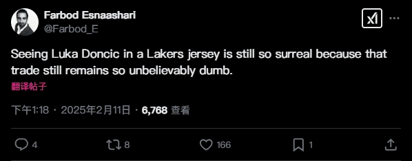 賽后,快船隊記Farbod Esnaashari發(fā)推寫(xiě)道:“看到盧卡-東契奇身穿湖人球衣依然讓人感覺(jué)很不真實(shí),因為那筆交易是那么不可理喻!愚蠢?!?/span>