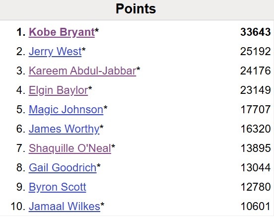 本場(chǎng)比賽過(guò)后,詹姆斯的湖人生涯得分來(lái)到10603分,超越賈馬爾-威爾克斯,上升至隊史第10位。
