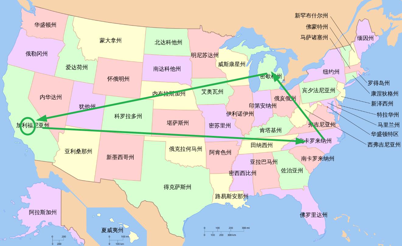 ??克內克特一周飛行路線(xiàn):LA→夏洛特→底特律→LA