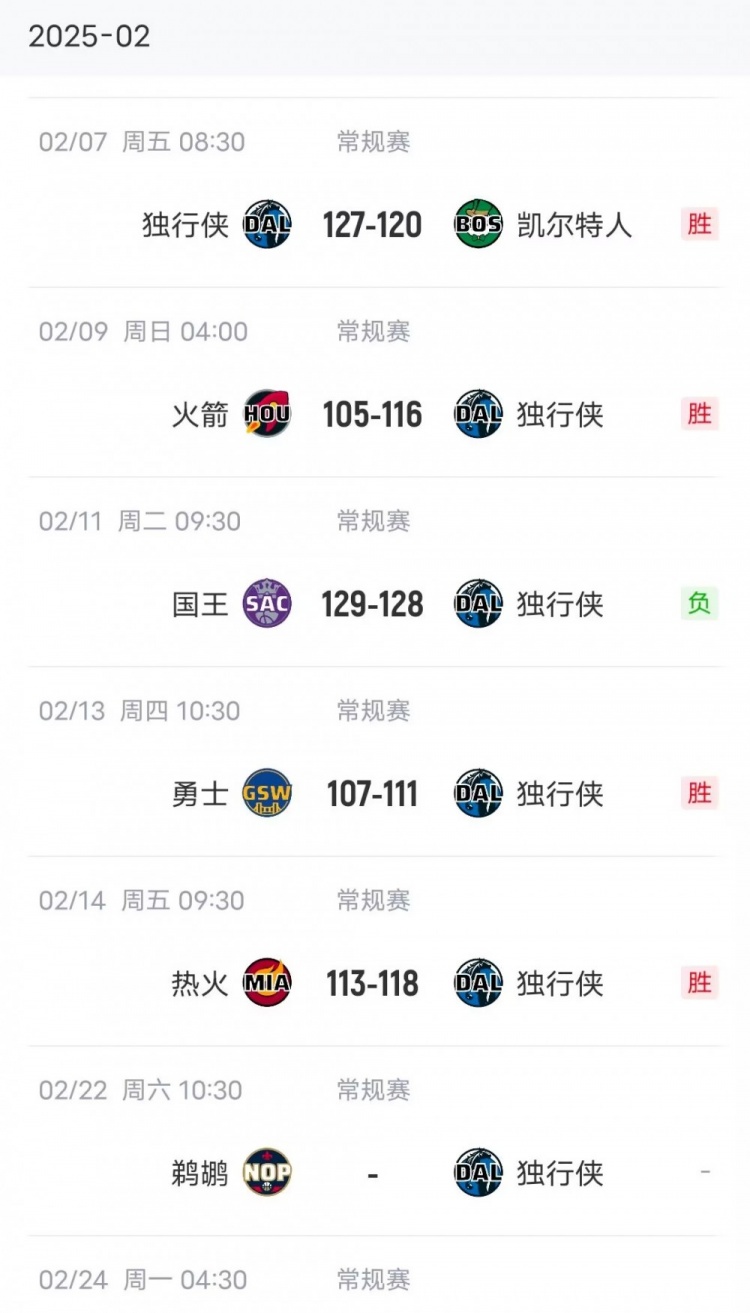 2月14日訊 NBA常規賽,獨行俠118-113力克熱火。據統計,最近5場(chǎng)比賽,獨行俠取得了4勝1負,唯一輸球是加時(shí)不敵國王。目前,獨行俠30勝26負排名西部第八。 標簽: NBA 籃球 西部 獨行俠