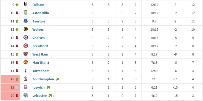 值得一提的是,在降級區邊緣,有著(zhù)兩位眼熟的傳統BIG6成員:曼聯(lián)與熱刺。他們在此前8輪拿7分和4分,僅僅高于降級區的升班馬三兄弟。而本輪,他們將正面交手。