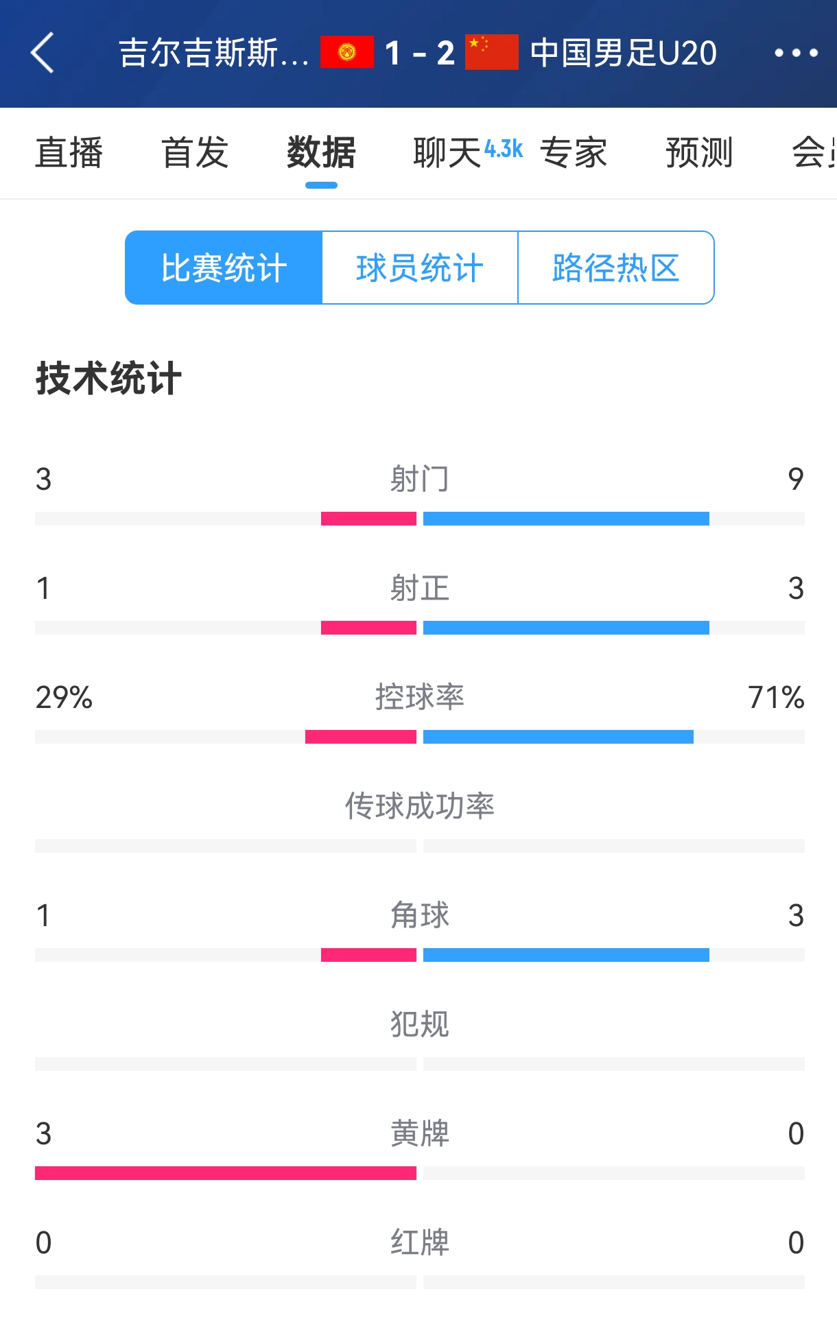 全面壓制!國青半場(chǎng)控球率高達7成,射門(mén)比9-3,造對方3張黃牌