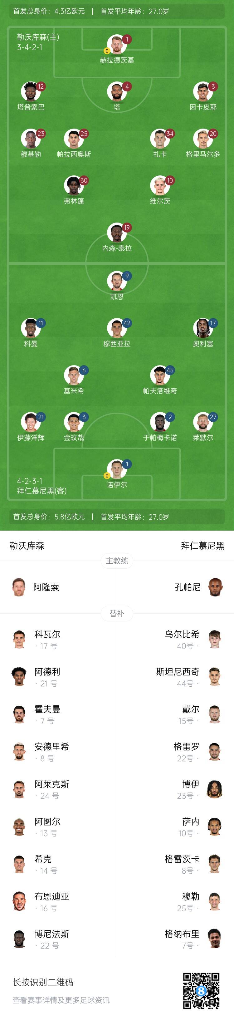 2月16日訊 德甲第22輪,拜仁客場(chǎng)對陣勒沃庫森。賽前,官方公布了本場(chǎng)的首發(fā)名單。