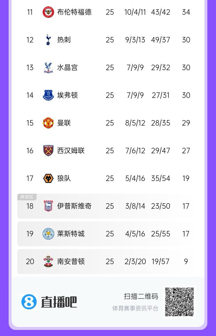 聯(lián)賽前25場(chǎng),曼聯(lián)8勝5平12負,打進(jìn)28球丟了35球,凈勝球已低至-7球。上賽季,曼聯(lián)最終在英超打進(jìn)57球丟58球,以-1凈勝球收官。