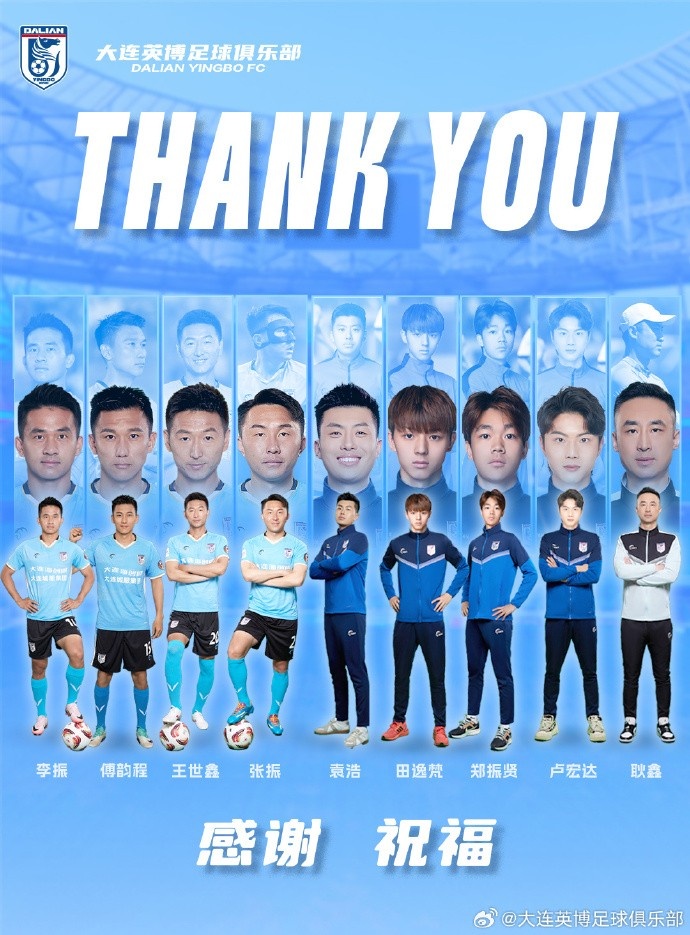 大連英博足球俱樂(lè )部衷心感謝所有球員的辛勤付出和不懈努力!祝愿大家未來(lái)一切順利!