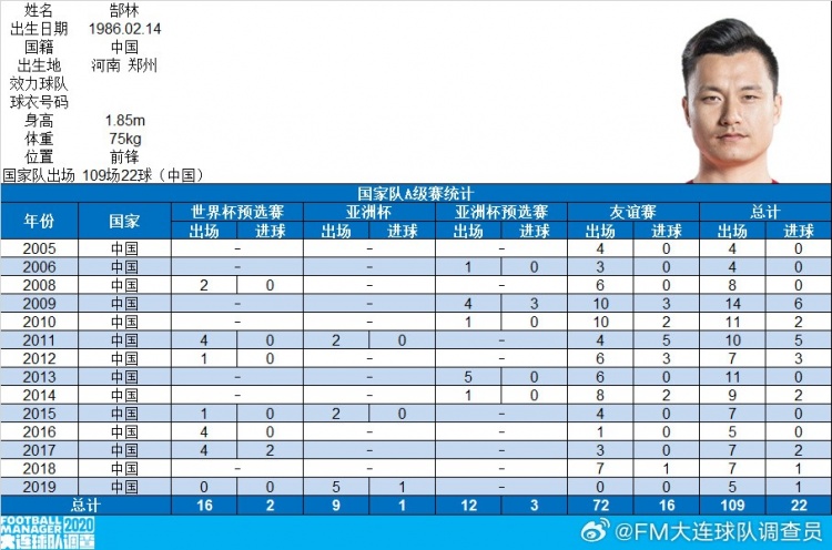 2月18日訊 在2月16日中國足協(xié)為郜林舉辦退役儀式后,博主“FM大連球隊調查員”在社媒公布了郜林的生涯數據統計。