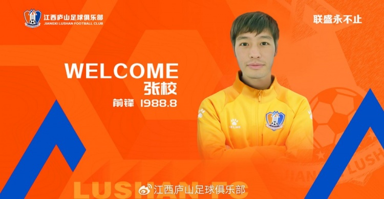 經(jīng)與本人友好協(xié)商一致,球員張校正式加盟江西廬山足球俱樂(lè )部。