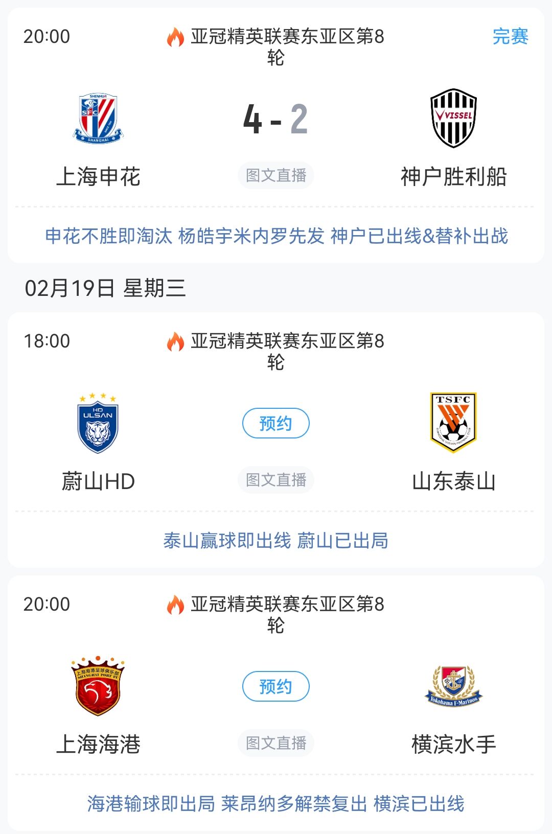 泰山和海港都將在明天出戰,泰山只要不輸球就能拿到晉級名額,而海港需要3分才能升入晉級區。只要泰山輸球或海港不勝,申花就能晉級到淘汰賽階段。