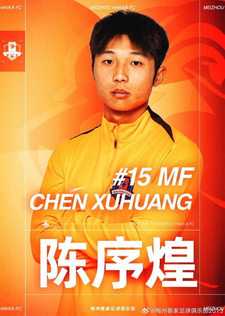 與球員本人友好協(xié)商一致,陳序煌已完成簽約手續,成功加盟梅州客家足球俱樂(lè )部,將隨隊征戰2025年中超聯(lián)賽及各項賽事。