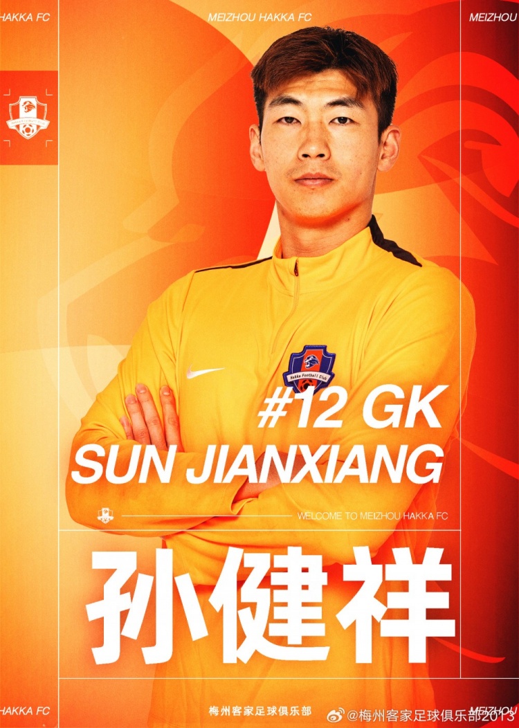 孫健祥身體高大,反應敏捷,具備良好的撲救能力和門(mén)前判斷力,有豐富的國內外比賽經(jīng)驗,新賽季將身披12號代表梅州客家征戰各項賽事。