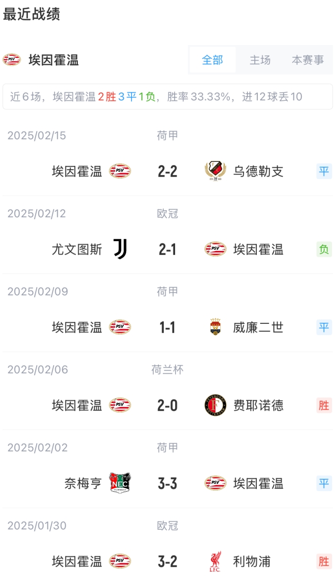 2月20日訊 歐冠淘汰賽附加賽次回合,埃因霍溫主場(chǎng)迎戰尤文比賽即將打響,賽前首發(fā)出爐。首回合對陣,尤文2-1埃因霍溫。