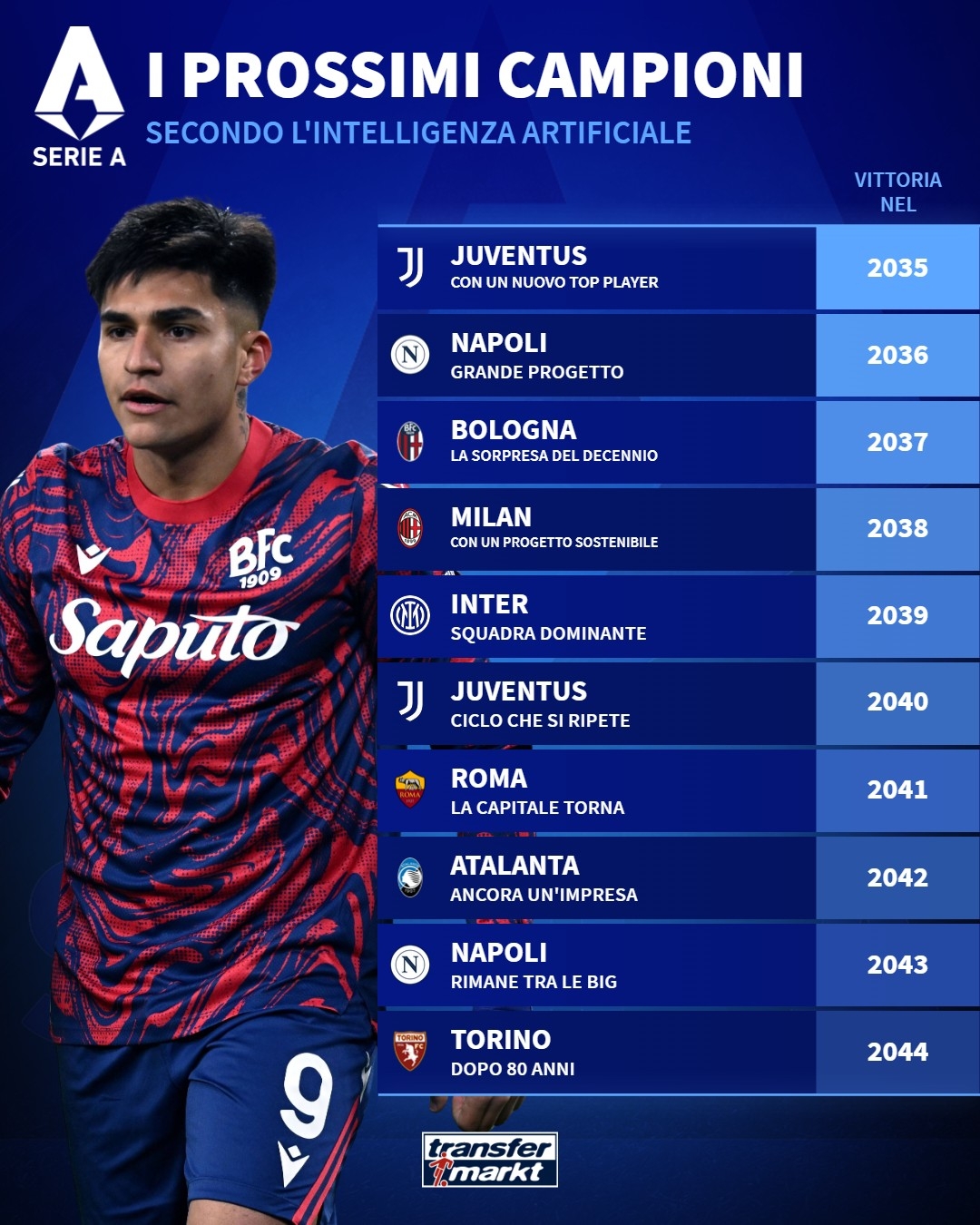 ChatGPT預測未來(lái)20年意甲冠軍:國米、尤文:4冠米蘭、那不勒斯:3冠羅馬、亞特蘭大:2冠博洛尼亞、都靈:1冠 標簽: 足球 意甲 AC米蘭 亞特蘭大 國際米蘭 都靈 尤文圖斯 羅馬 那不勒斯 博洛尼亞