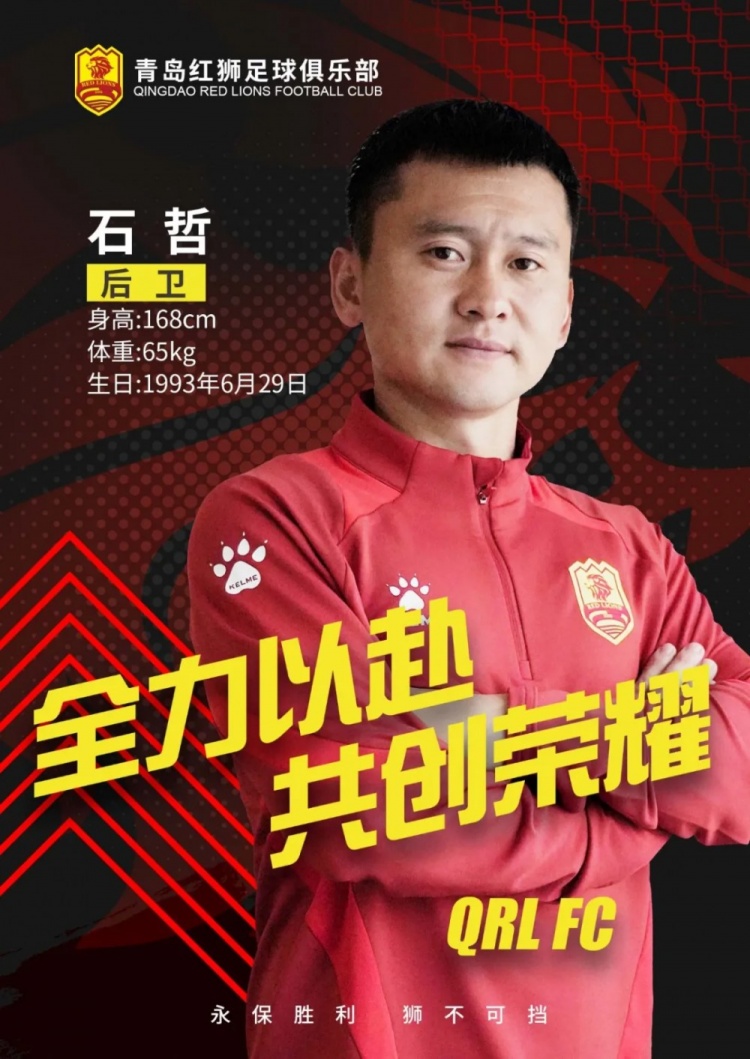 石哲,出生于1993年6月29日,身高168cm,體重65kg,他跑動(dòng)積極,拼搶兇狠,腳下細膩,戰術(shù)執行力強,可勝任場(chǎng)上多個(gè)位置。2019賽季石哲以絕對主力身份為青島隊在中甲聯(lián)賽中奪冠并沖超成功立下汗馬功勞;2023賽季石哲轉會(huì )云南玉昆,幫助球隊沖甲成功;2024賽季助云南玉昆獲得中甲聯(lián)賽冠軍并成功沖超。期待他在加盟球隊后迅速融入技戰術(shù)體系,用經(jīng)驗和斗志為紅獅貢獻力量!