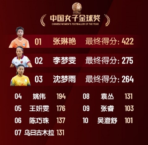 2月21日訊 《足球周刊》公布了本次中國金球獎各獎項評選具體得分,其中中國金帥獎方面于根偉斷層領(lǐng)先,中國女子金球獎則是張琳艷同樣較大優(yōu)勢領(lǐng)跑。