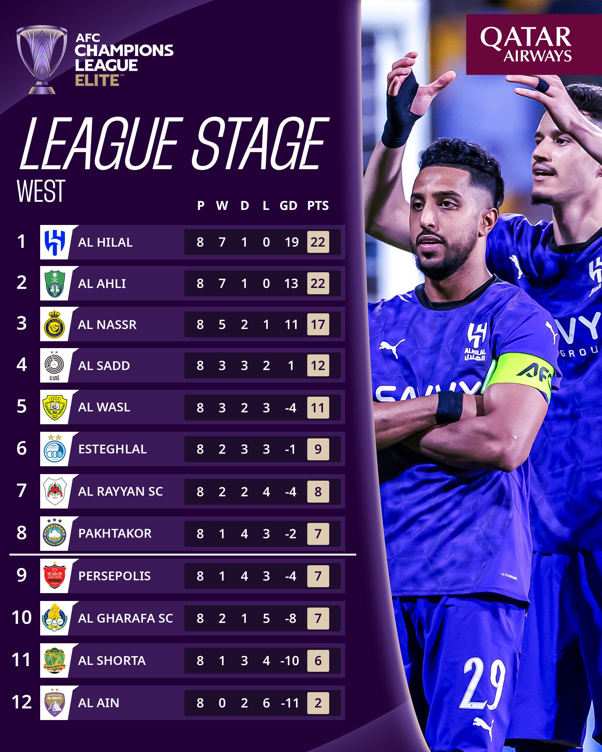 亞冠官推公布積分榜:山東泰山戰績(jì)清零,海港申花晉級