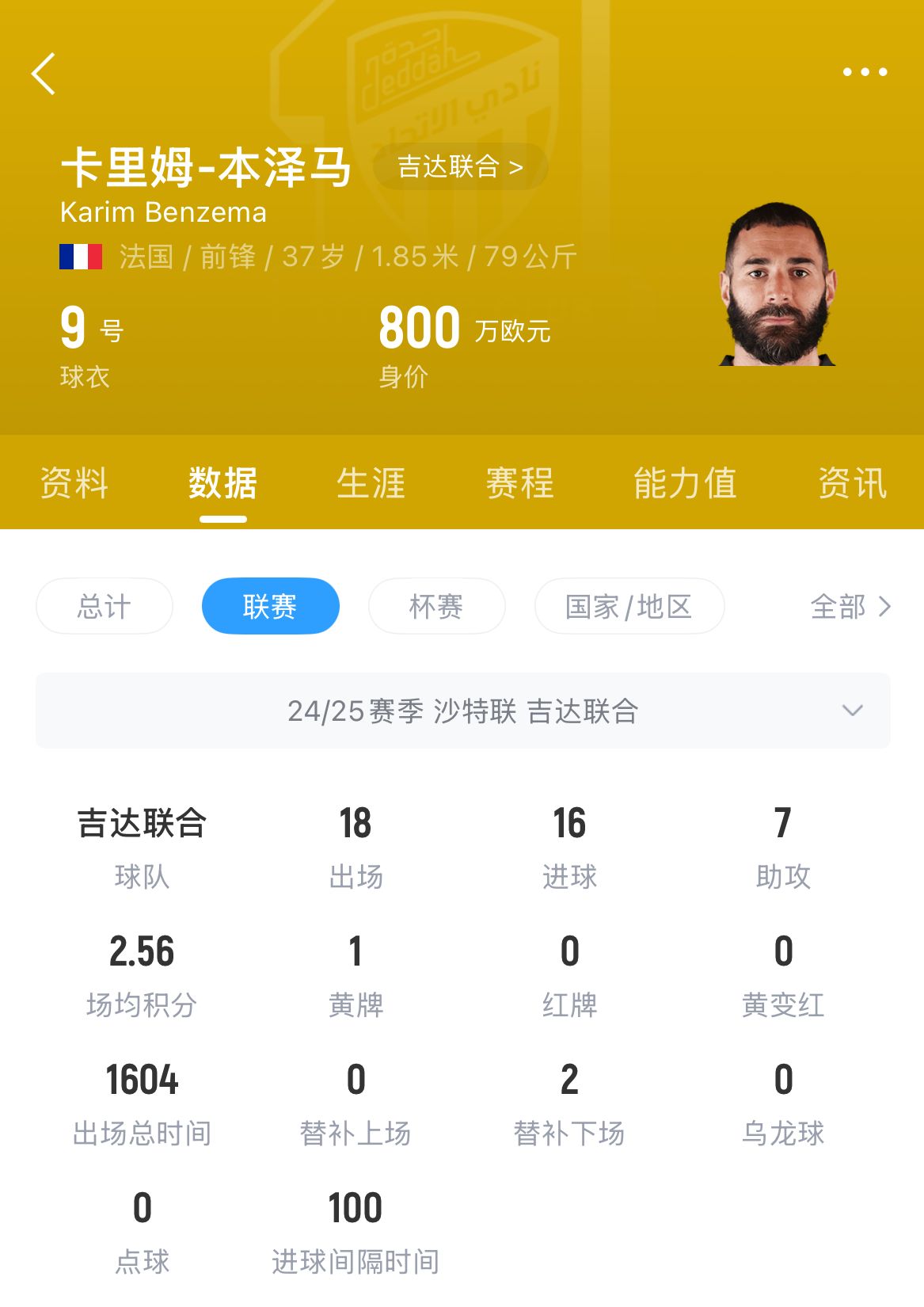 本場(chǎng)過(guò)后,本澤馬以18場(chǎng)16球的聯(lián)賽數據,登上沙特聯(lián)射手榜頭名的位置,他與C羅均打入16球。