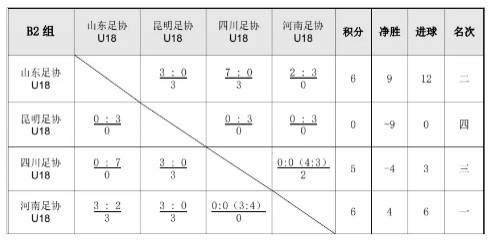 小組賽最后一輪,由于對手昆明足協(xié)U18隊棄權,河南隊憑借對陣山東的勝負關(guān)系優(yōu)勢,力壓對手以小組頭名的成績(jì)進(jìn)入到了接下來(lái)的排位賽。